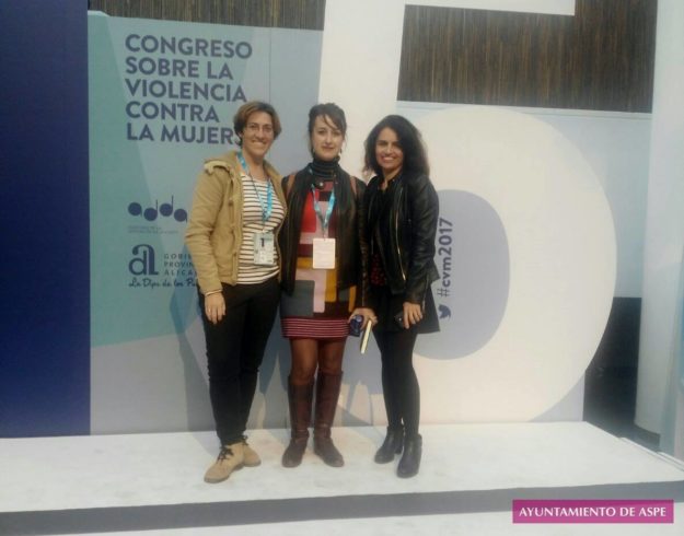 La concejala de Igualdad, Yolanda Moreno, junto con la responsable de la agencia de Igualdad Noemi Moreno y la Profesora UMH Anastasia Téllez, han participado hoy en el congreso sobre violencia a la mujer organizado por la Diputación de Alicante.