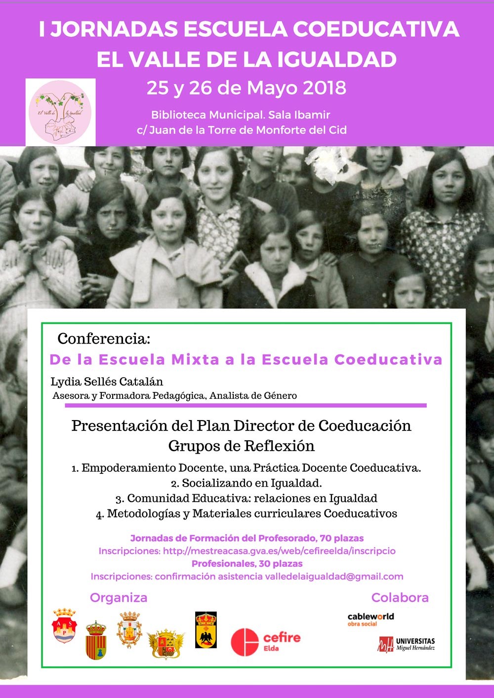 Desde el Valle de la Igualdad y siguiendo con nuestro compromiso por una sociedad más igualitaria hemos diseñado estas jornadas de Formación del Profesorado para el desarrollo de una Escuela Coeducativa.